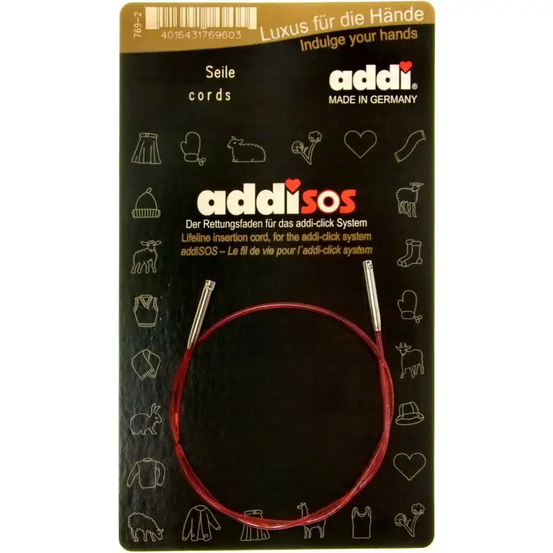 Леска addiClick SOS с прорезью также можно использовать для протягивания страховочной нити через трикотажное полотно. Шнур совместим с любыми аксессуарами addiClick, например, с дополнительными лесками, разъемными спицами или даже тунисскими крючками addiClick.